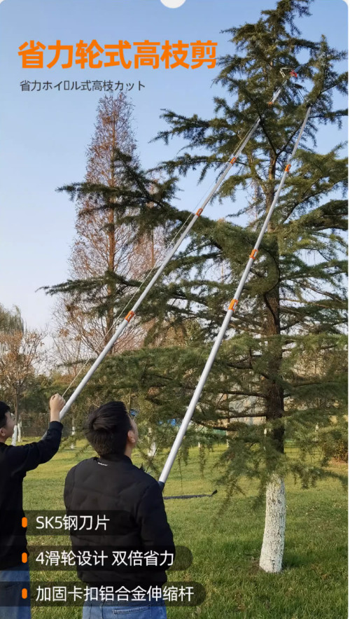 dụng cụ cắt cành cây trên cao giật dây thường được thiết kế với cán cây có thể kéo dài, giúp bạn điều chỉnh chiều dài sao cho phù hợp với chiều cao của cây và tầm với của mình. Điều này cho phép bạn tiếp cận các cành ở độ cao khác nhau và thậm chí cả những cành ở góc rất khó tiếp cận. Dụng cụ cắt cây trên cao còn đi kèm với thân ống bằng hợp kim có mở rộng để tăng thêm chiều dài khi cần thiết.